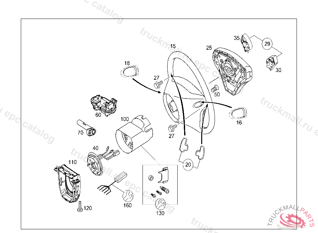 STEERING WHEEL , A 55589720030630804 E 02000020070101804 A 97499920070630 E 06000020080801809 9E37005021 041A/048A/121A/128A/168A/231A/238A QFT203A4537 BLACK