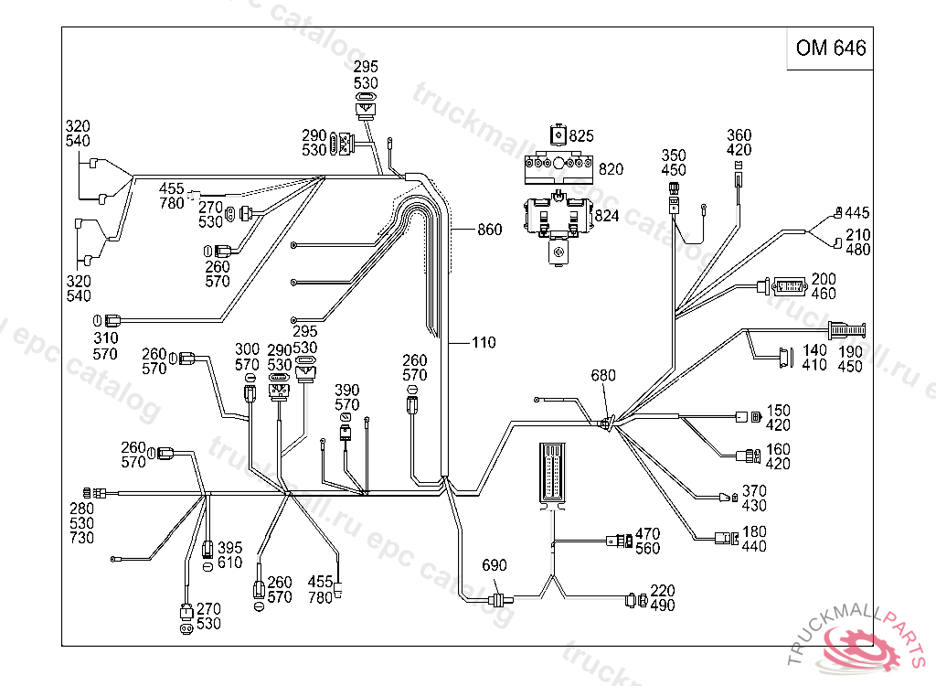 INSULATING SLEEVETO 000 546 83 40, A 218852 EXCEPT FOR A 103237 - A 218851 WITH CODE 030 F 190065 EXCEPT FOR F 159752 - F 190064 WITH CODE 030 AS OF IDENT-NO.: FOR HEADLAMP WIRING HARNESS REFER TO TU 54/121, WITH AIR CONDITIONER REFER TO TU 54/485 ALSO INSTALLED ON A 219847