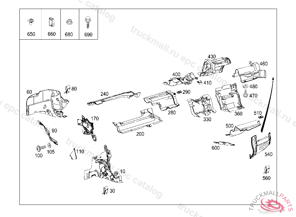 SCREENING TO FIRE WALL,RECHTS, F 84944720120108, Replaced By: A2046803422