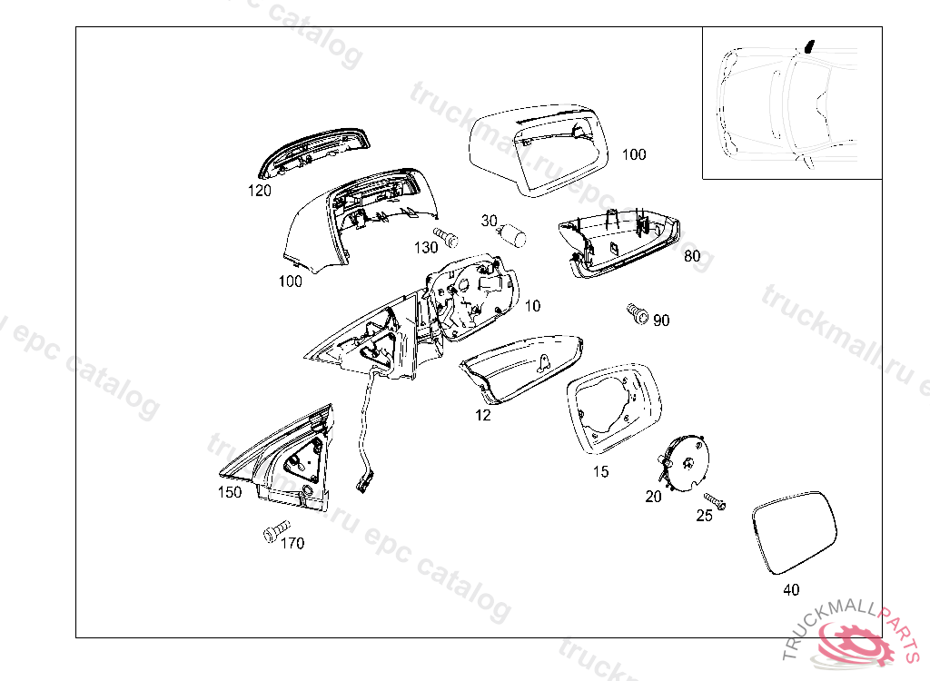 FRAME , CAUTION: WITH VEHICLES WITHOUT CODE 275 (MEMORY PACKAGE), MIRROR MOTOR A 171 820 10 42 MUST ALSO BE ORDERED