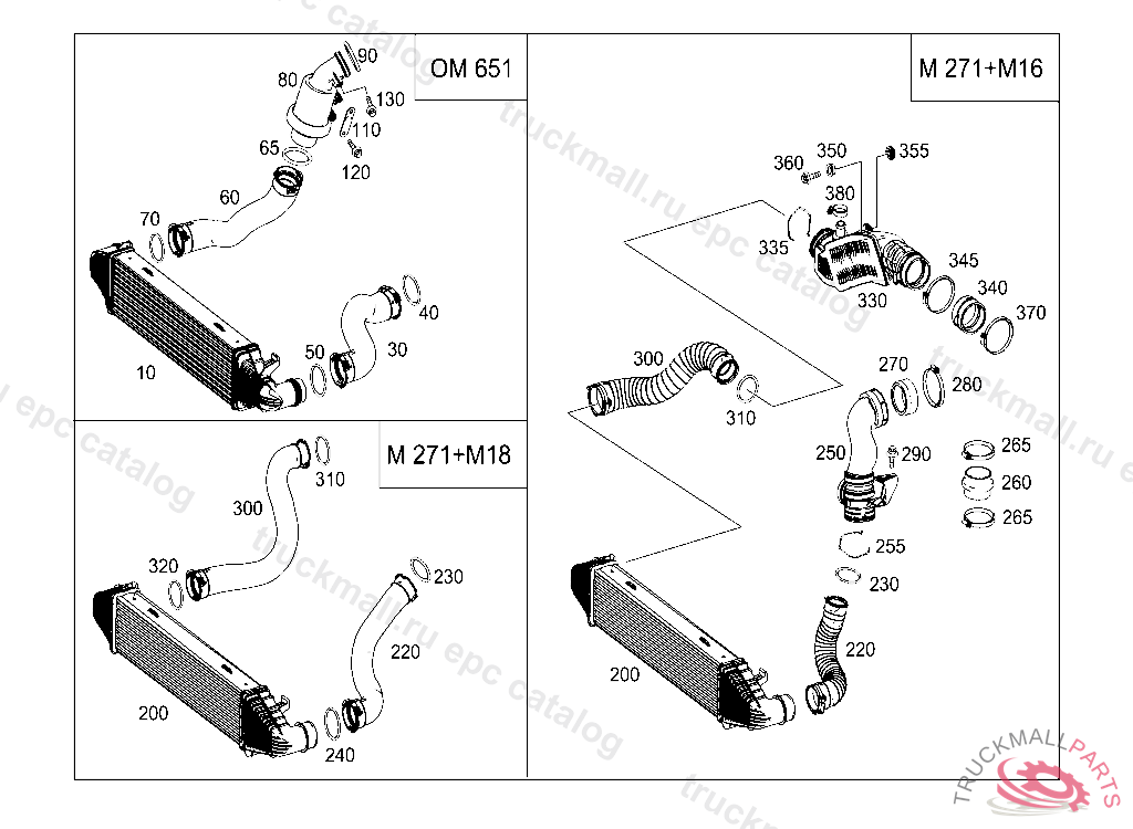 CHARGE AIR HOSE AT CHARGE AIR COOLER, RIGHT