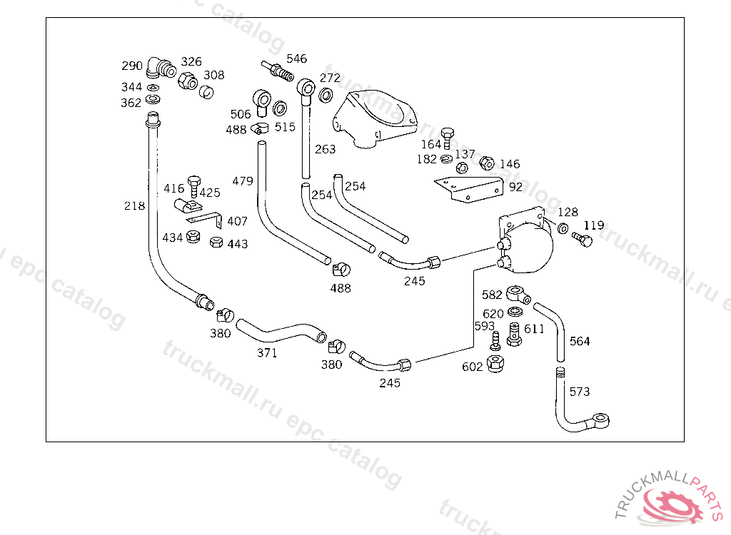LINE FROM HEAT EXCHANGER TO THERMOSTAT HOUSING, FROM ENGINE 253403 YEAR OF MANUFACTURE 1992