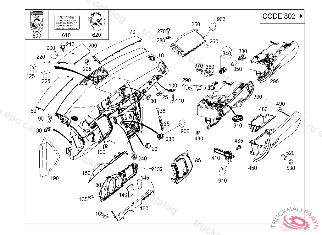 GLOVE BOX GLOVE COMPARTMENT, IMPORTANT: ADAPT HOUSING ON TAXI VERSION, Replaced By: A2046800010
