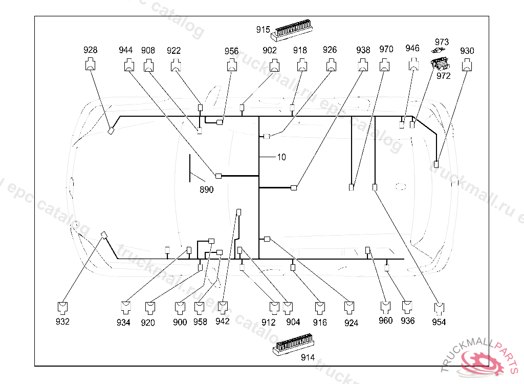WIRING HARNESS FRAME FLOOR UNIT MAIN CABLE HARNESS, STATE IDENT NO. WHEN ORDERING THE CORRESPONDING SPECIAL EQUIPMENT IS CONTAINED IN THE WIRING HARNESS ACCORDING TO THE VEHICLE PRODUCTION NUMBER