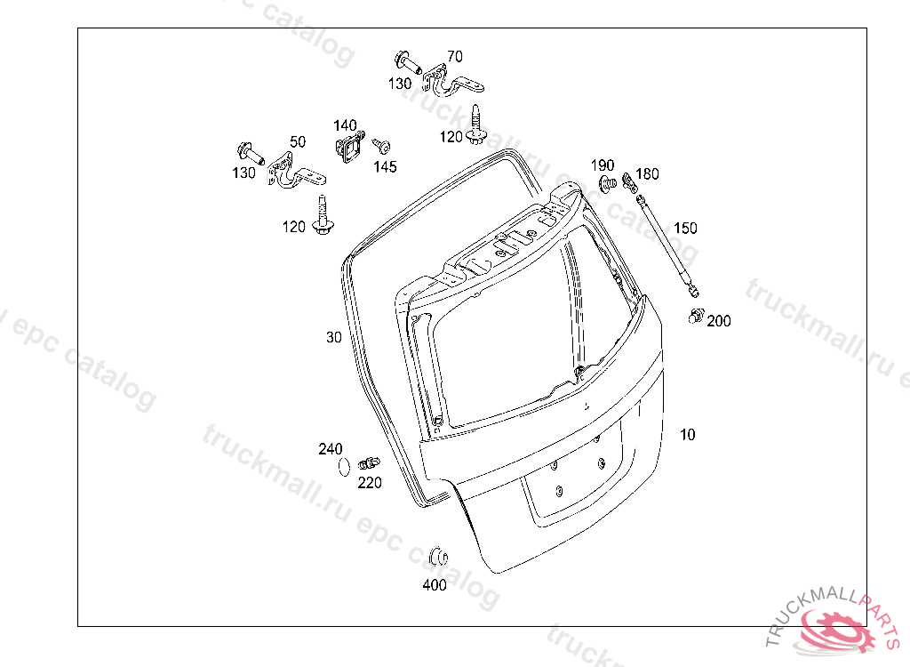 STOP REAR PANEL DOOR, L 03964220100430 V 00250220100430 F 51237820100502
