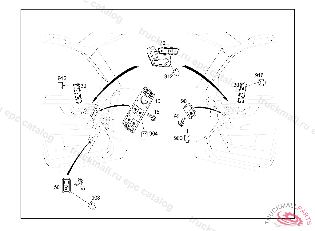 PUSH BUTTON SWITCHES FOR CO-DRIVERS DOOR, 9107QFT204A1030 MIDSOFT BLACK, Replaced By: A2048700081