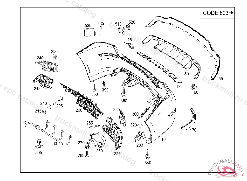 PANELING REAR BUMPER, TO BE ADAPTED DURING ASSEMBLY TO BE PAINTED PRIOR TO INSTALLATION OBSERVE WORK INSTRUCTIONS IN WIS WIS-NET#AR88.20-P-2200-01CW# 9999QFT204L9000 COLORLESS