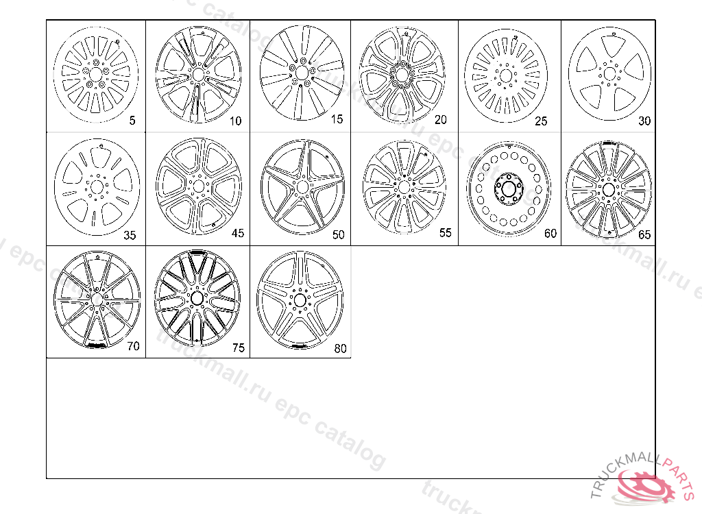 DISK WHEEL 5-DOUBLE SPOKE WHEEL REAR AXLE 7J X 17 H2 ET 48,5