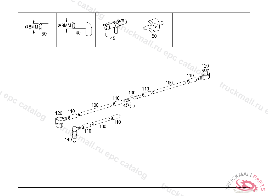 HOSE MASTER SWITCH AND VACUUM SWITCH 40 MM, 023 164780 033 066774 123 158077 130 172061
