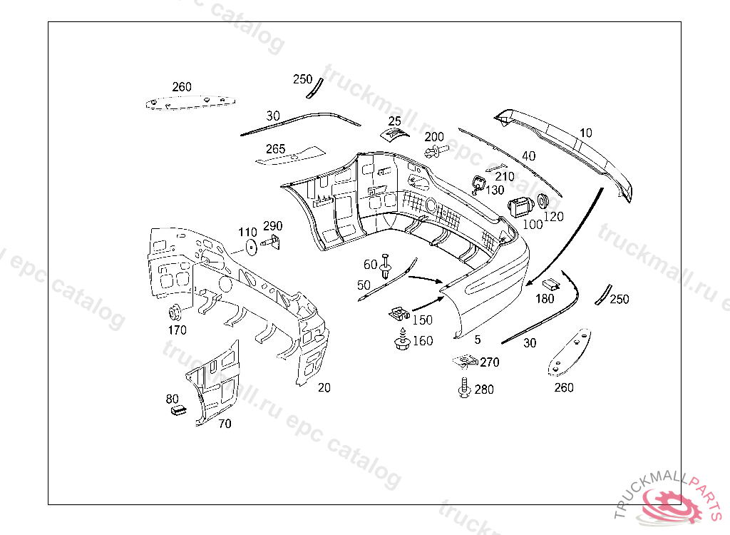 PANELING REAR BUMPER GEPRIMERT, TO BE PAINTED PRIOR TO INSTALLATION ETB6 603 63 26, LU CONTAINS A 209 885 01 65, A 209 885 05 21, A 209 885 06 21 AND A 209 885 00 21