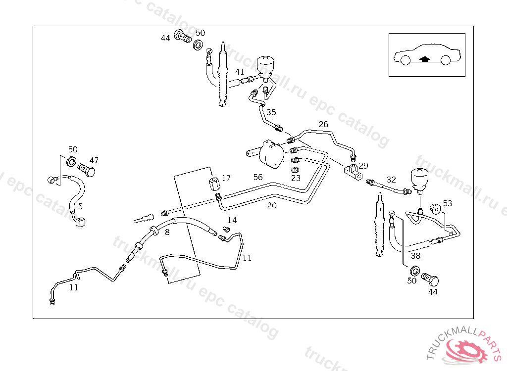 LINE FROM DISTRIBUTOR TO RIGHT REAR SPRING LOAD ACCUMULATOR