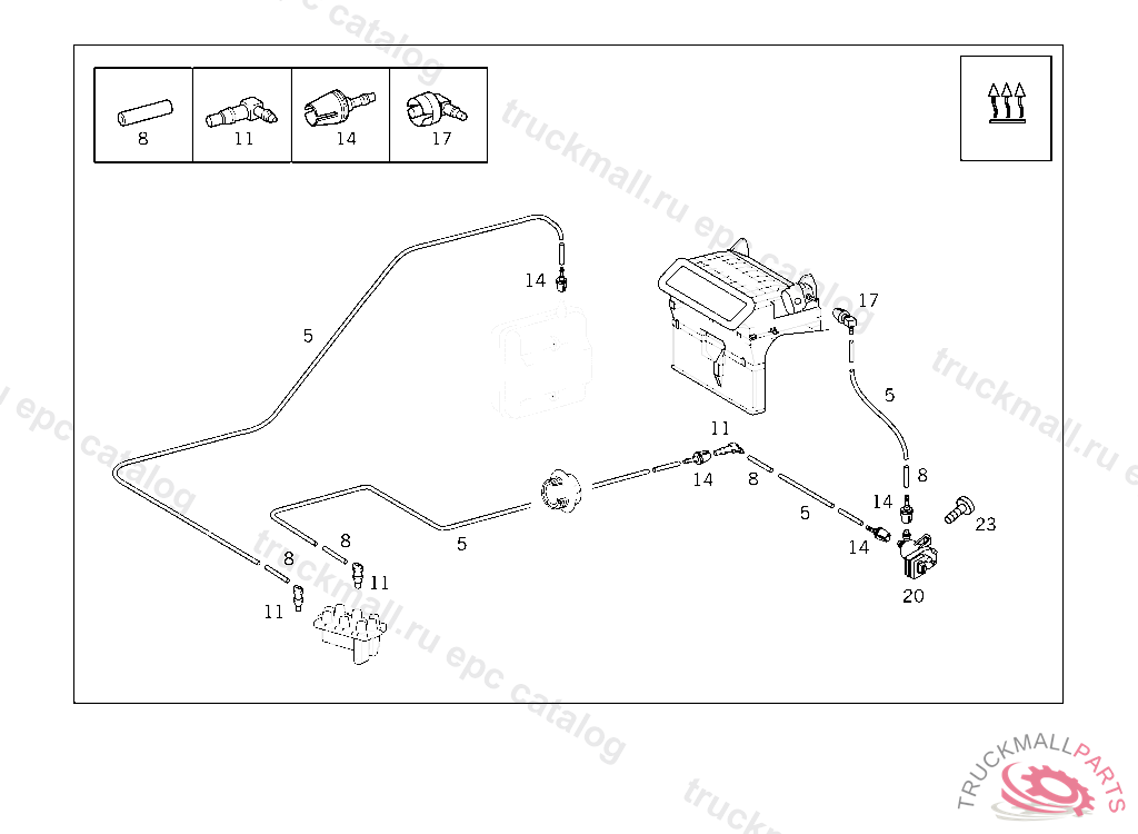 PIPE LINE FROM CHECK VALVE DISTRIBUTOR TO SUPPLY TANK 500 MM, ORDER BY THE METER 114.010 FROM CHASSIS 031062,114.015,017 FROM CHASSIS 033609,114.021 FROM CHASSIS 001552,114.022 FROM CHASSIS 000843,114.023 FR OM CHASSIS 000001 115.010 FROM CHASSIS 034113,115.015 FROM CHASSIS 032215 114.010,021,022 UNTIL PRODUCTION STOP, 114.011 UP TO CHASSIS 108425, 114.015,017 UP TO CHASSIS 245853, 114.023 UP TO CHASSIS 100866 AND FOOTN.63