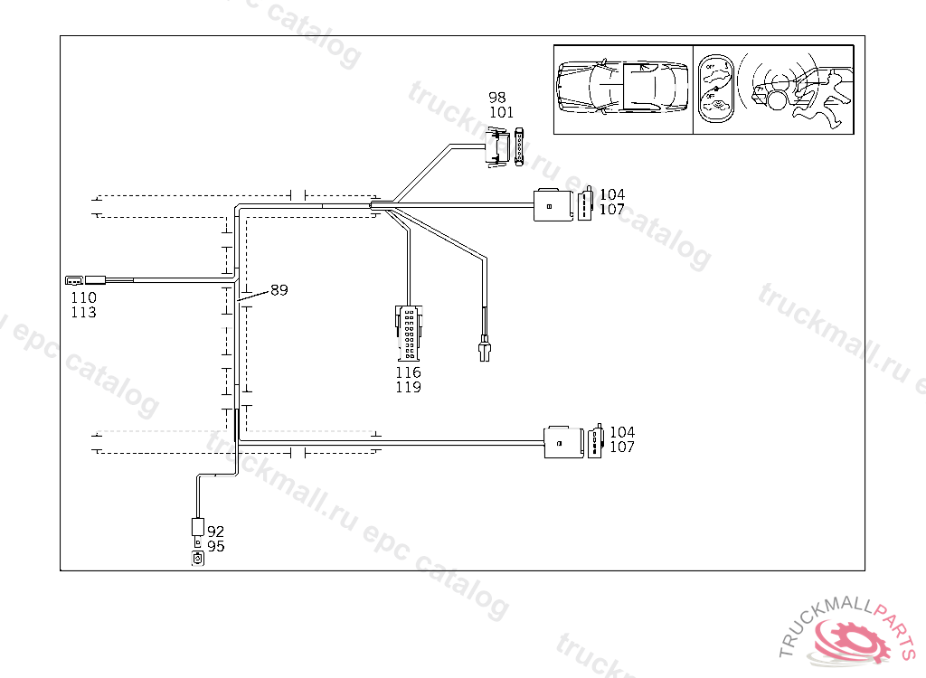 CABLE HARNESS INTERIOR SAFEGUARD, A 394035 X 004165, J 036478 EXCEPT CODE 808 ALSO INSTALLED IN VEHICLE FROM A 394036 / X 004166 WITH CODE 807