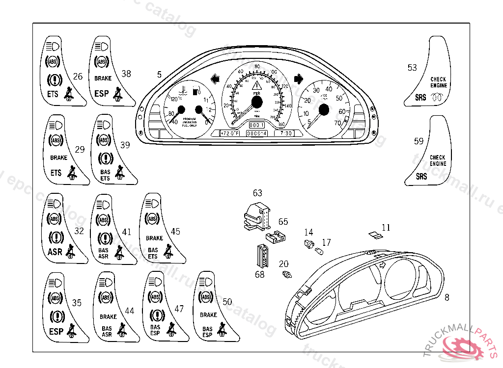INSTRUMENT CLUSTER160 MPH/260 KM/H, ATTENTION!!! SPARE PART MUST BE CODED WITH HAND-HELD TESTER AFTER INSTALLATION IN VEHICLE! PART IS ONLY OR ALSO SUPPLIED AS RECONDITIONED PART A 698508 X 012426 EXCEPT CODE 808 ALSO INSTALLED IN VEHICLE TO A 698507, X 012425 WITH CODE 809