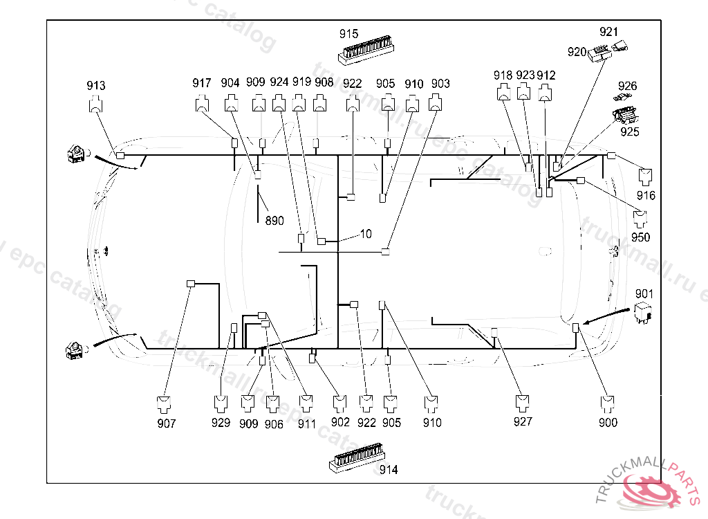 ELECTRICAL WIRING HARNESS FRAME FLOOR UNIT MAIN CABLE HARNESS, STATE IDENT NO. WHEN ORDERING THE CORRESPONDING SPECIAL EQUIPMENT IS CONTAINED IN THE WIRING HARNESS ACCORDING TO THE VEHICLE PRODUCTION NUMBER