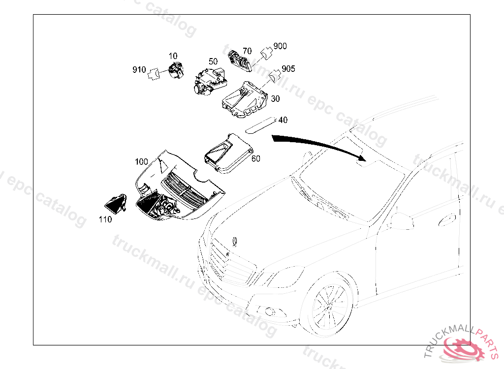 MULTI-PURPOSE CAMERA WINDSHIELD TOP, FIRST EXHAUST STOCK OF OLD PARTS UP TO IDENT NO. A 20130606 L 03634820130630 V 00262220130630 PART MUST BE CHECKED AFTER INSTALLATION FOR CURRENT FLASHWARE, Replaced By: A0009009504