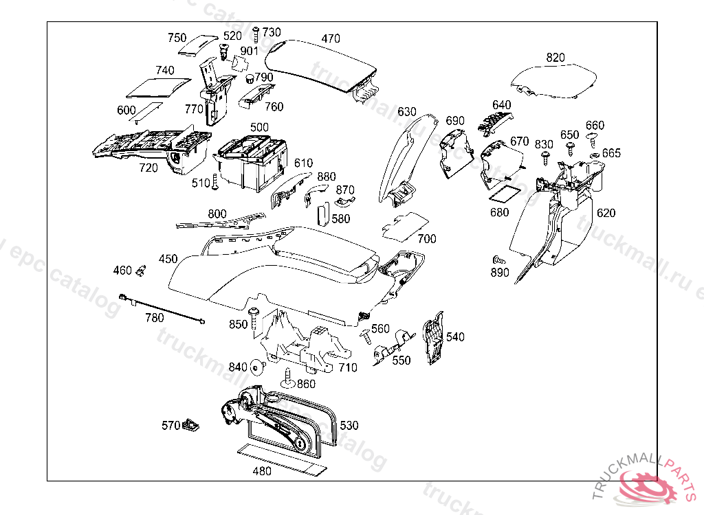 STOWAGE COMPARTMENT CENTER CONSOLE IN REAR