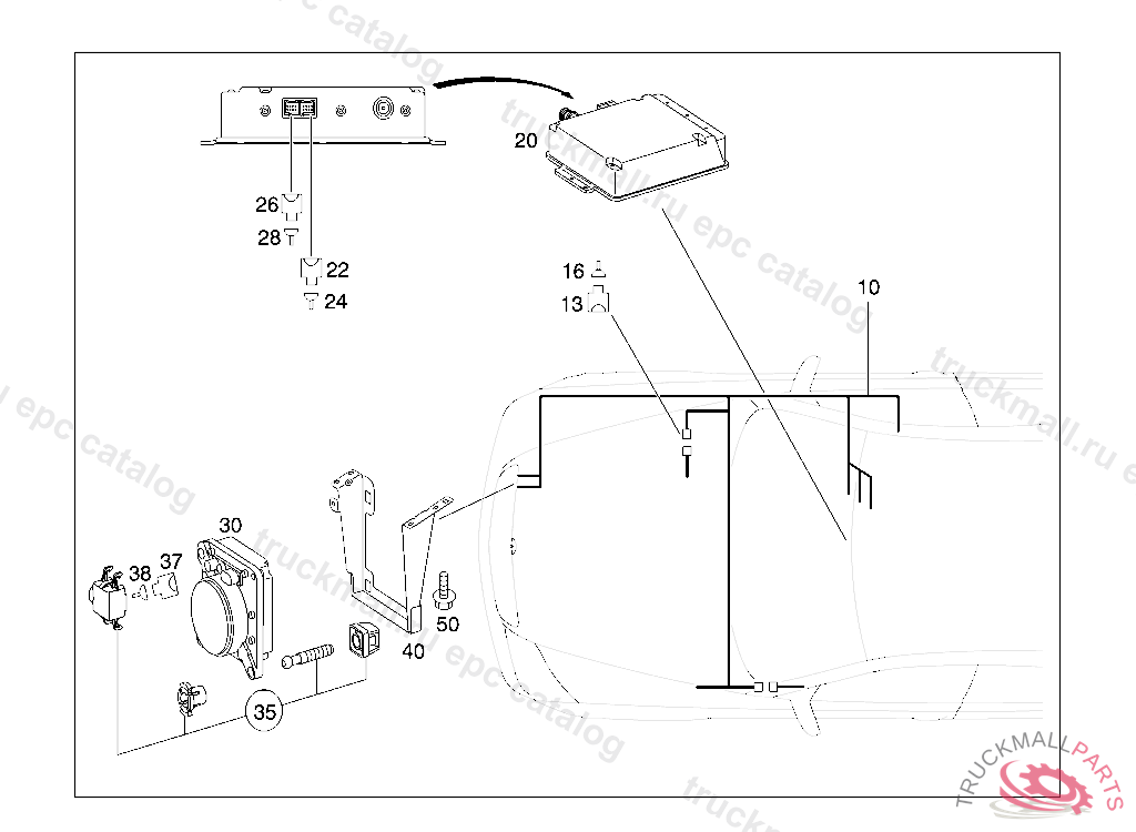 CONTROL UNIT AUT. INTELLIGENT CRUISE CONTROL, IN FRONT-PASS. FOOTWELL RDU, A 00159520060321806 PART MUST BE CHECKED AFTER INSTALLATION FOR CURRENT FLASHWARE
