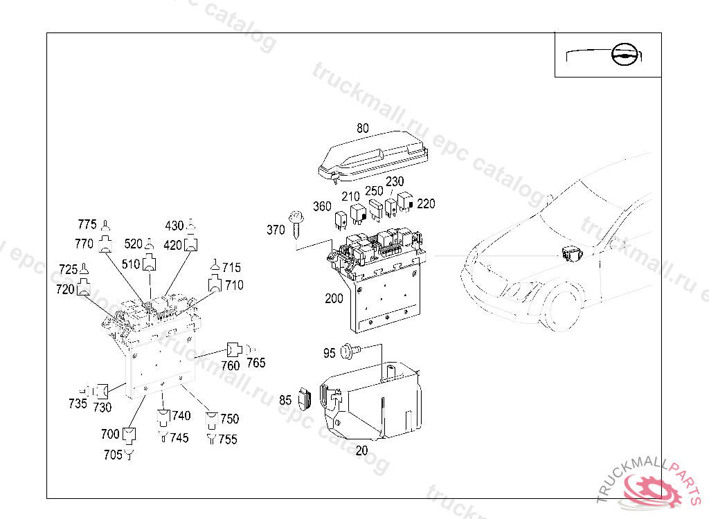 ELECT. CENTER DISTRIBUTOR SAM/SRB IN ENG. COMP., PASSENGER SIDE, A 00278020090930800