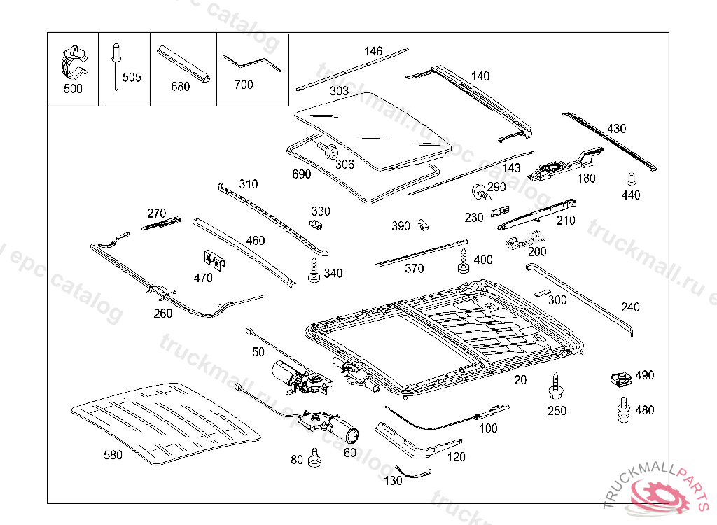 FRAME SLIDING ROOF FRONT, IS DELIVERED WITHOUT GLASS COVER AND ELECTRIC DRIVE