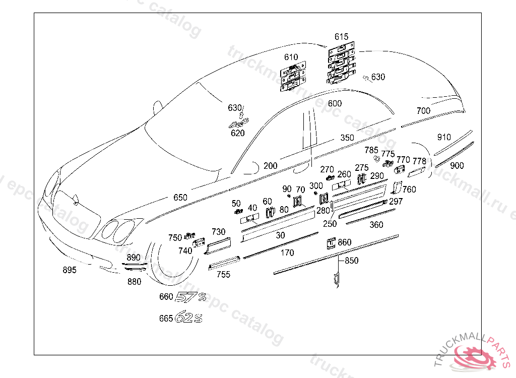 CLIP PROTECTIVE TRIM ON REAR DOOR, RIGHT