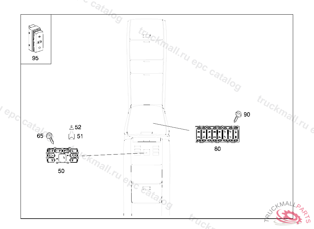 SWITCH CENTER ARMREST, A 00143920050708 A 00252220080930809 9190QFT240A1000 DEEP BLACK