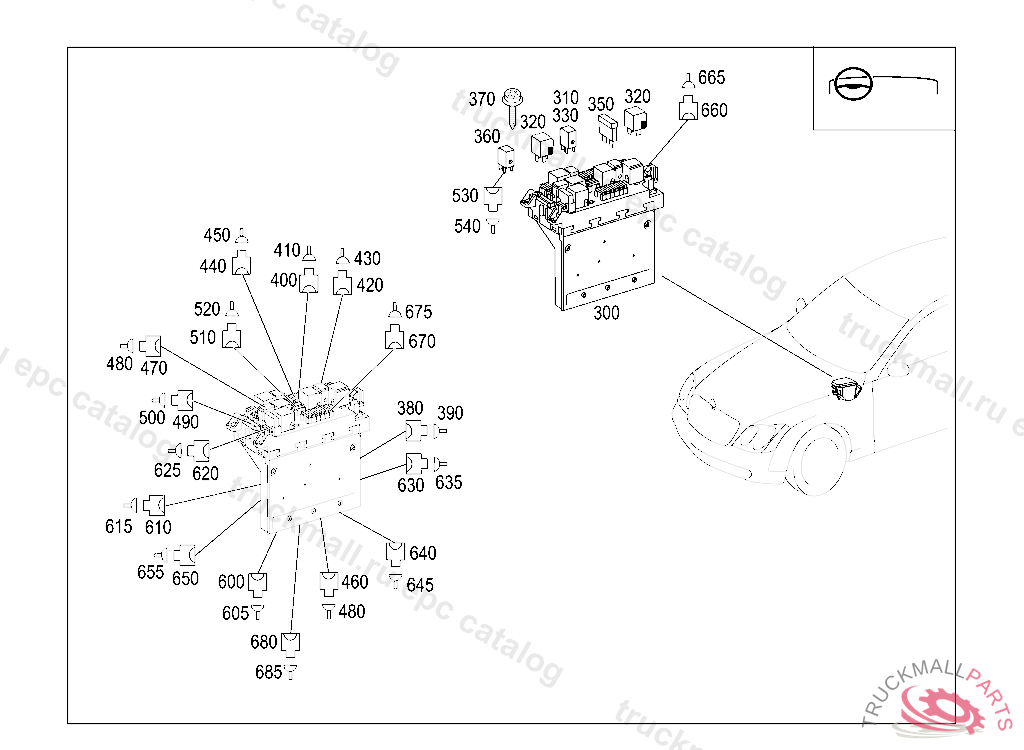 FUSE BOX SAM/SRB IN ENGINE COMP., DRIVER SIDE, A 00277920090630800, Replaced By: A2405451201