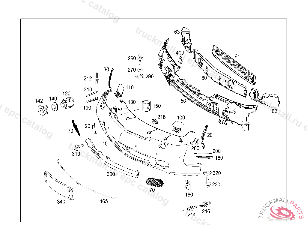 FRONT BUMPER FRONT, A 00291020100930801 TO BE PAINTED PRIOR TO INSTALLATION CAUTION! WHEN ORDERING ES2 NO TO BE QUOTED: 9999