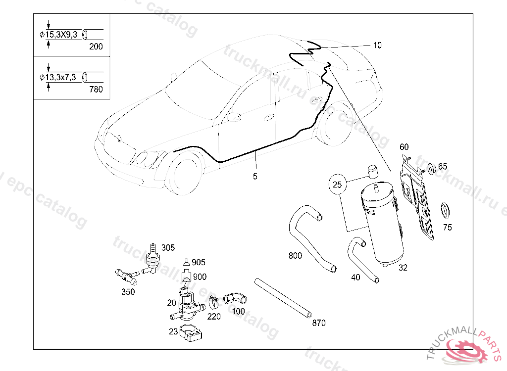 HOSE ACT. CARBON FILTER TO FUEL TANK 125 MM, Replaced By: A2304768826
