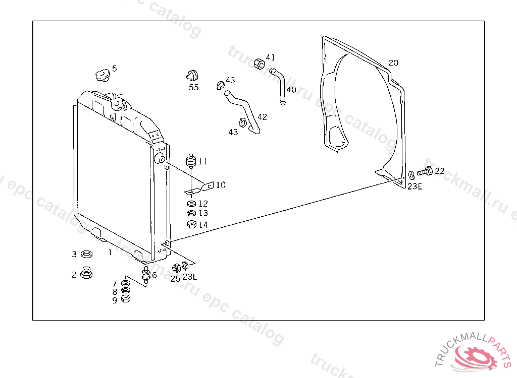 RADIATOR , FROM CHASSIS 611358 EXCEPT FOR 611519,611537 ALSO INSTALLED ON 610763,610832,610834,610848,610863