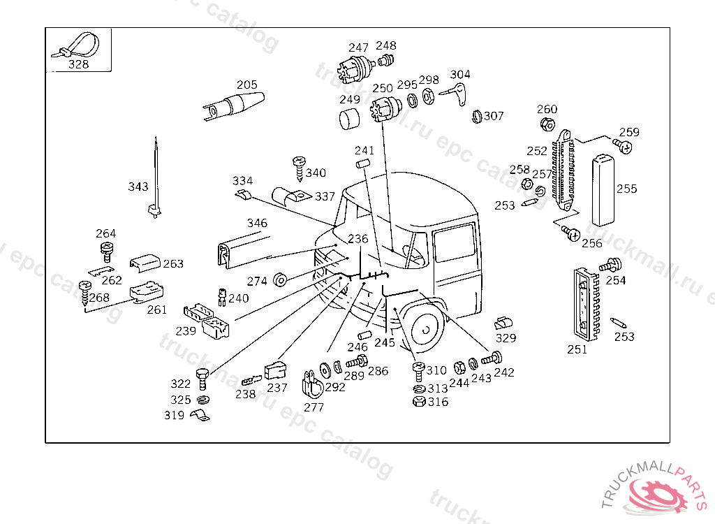 PIN BUSHING HOUSING. PLUG HOUSING FROM CHASSIS/CAB CONNECTION POINT TO TACHOGRAPH