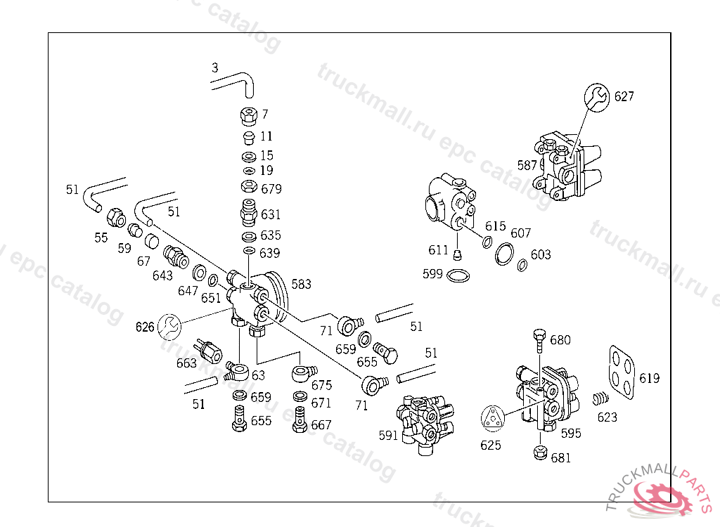 VALVE (FOUR-CIRCUIT PROTECTIVE VALVE) BOSCH, 620.415 UP TO CHASSIS 5 014668 620.416 UP TO CHASSIS 5 000515 620.417 UP TO CHASSIS 4 972023