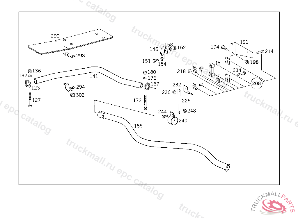 BRACKET REAR EXHAUST PIPE TO BRACKET AT SHOCK ABSORBER CROSS MEMBER, 309.0 FROM CHASSIS 184087,EXCEPT FOR MODEL 050 FROM CHASSIS 192298, 309.1 FROM CHASSIS 182066