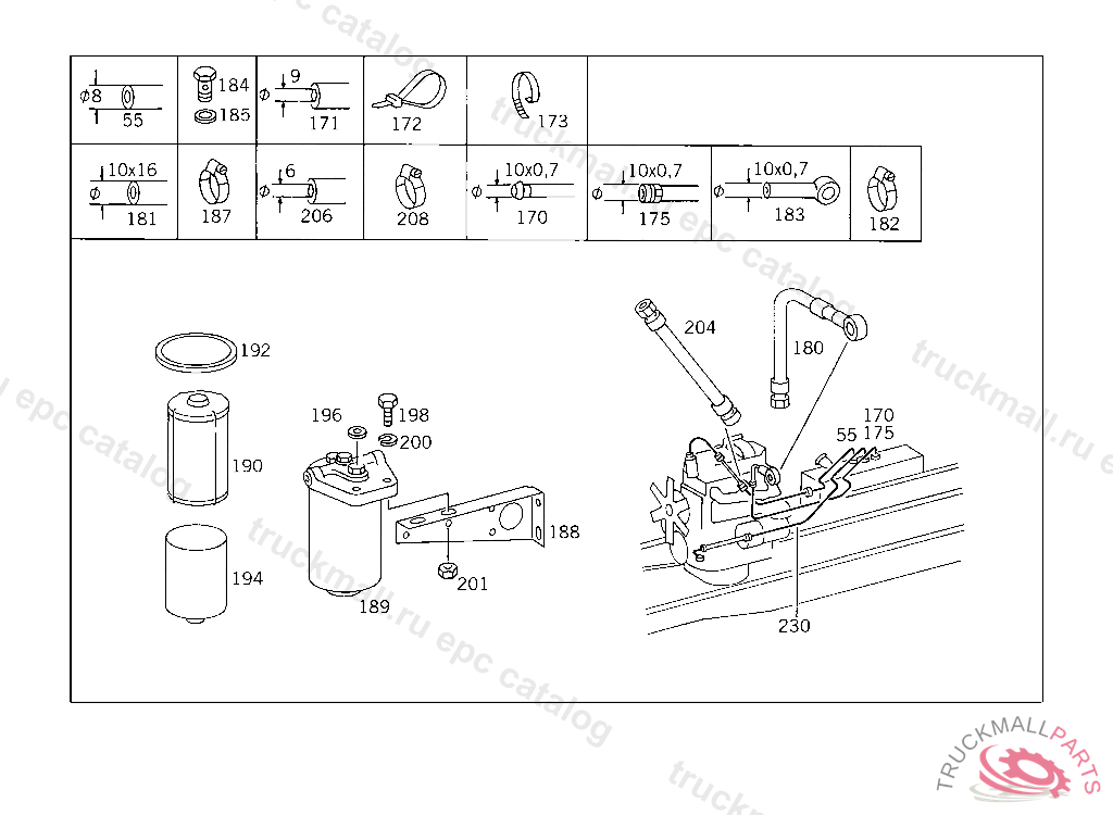 LINE WITH SEAL CONE 1000 MM, TYPE 1113B UP TO CHASSIS 604683,TYP LP 1517 UP TO CHASSIS 600412,TYPE LP 1317 UP TO CHASSIS 601123,TYPE LP 911 B UP TO CHASSIS601688 CONTINUED,SEE FOOTNOTE 003