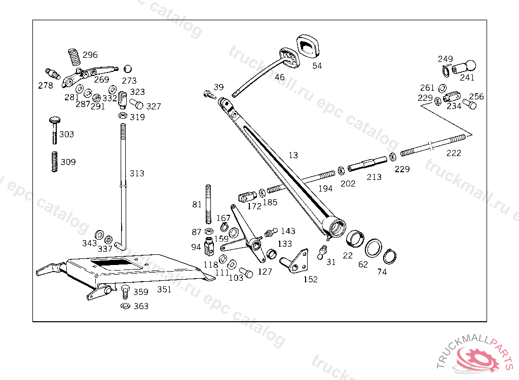 PULL ROD FROM TURNBUCKLE IN FRONT OF REAR AXLE TO TURNBUCKLE BEHIND REAR AXLE