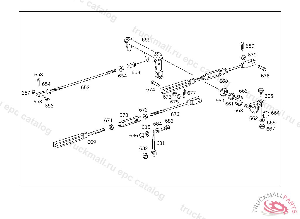 PULL ROD FROM HAND BRAKE VALVE TO SPRING-LOAD ACCUMULATOR CYLINDER