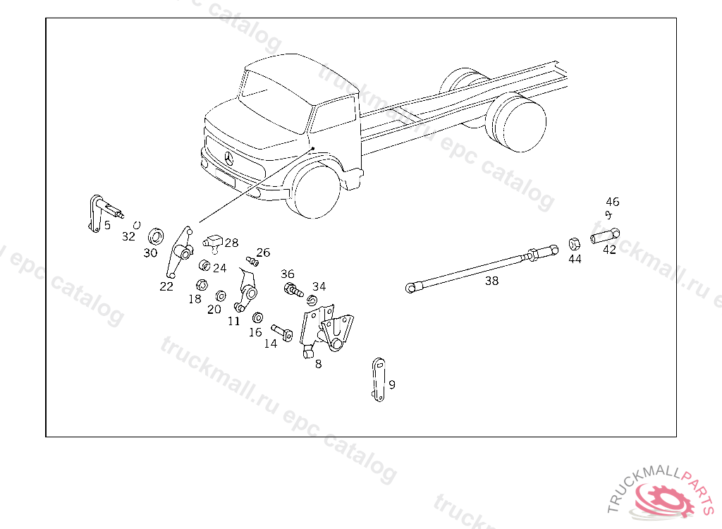 BRACKET BRAKE PEDAL THRU CAB FLOOR, 032,033,040,041,132,133,140,141 FROM ENGINE 031700 040,041,140 UP TO CHASSIS 085315 344.141 LESS SUPERCHARGING SYSTEM UP TO CHASSIS 031699 ON LK 1113 WITH CAB 814 FROM CHASSIS 12326709