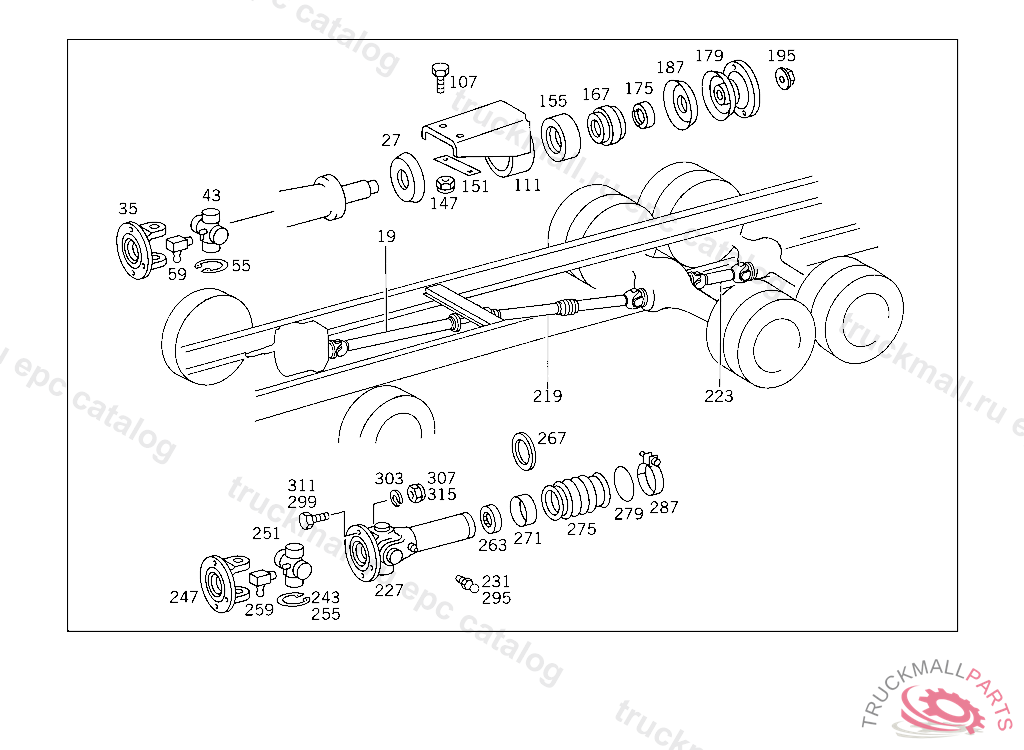 PROPELLER SHAFT FROM PROPELLER SHAFT BEARING TO REAR AXLE I 1530 MM, 401,402,403,420,424,431,432,433,441,445 FROM CHASSIS 588186