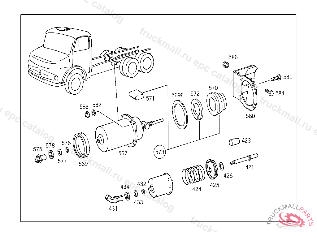SPRING IN ITS PLACE,YOU MAY ALSO USE MERCEDES-BENZ PART NO.: 001 431 40 93, 058 USED WITH HYDRAULIC BRAKE, UP TO CHASSIS 589554