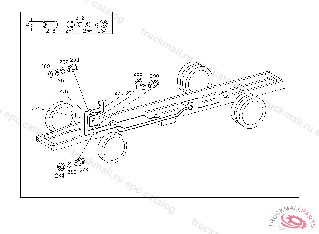LINE FROM HOSE TO CONTROL LINE FITTING 8X0.7 MM, 350.033 UP TO IDENT NO. 680088