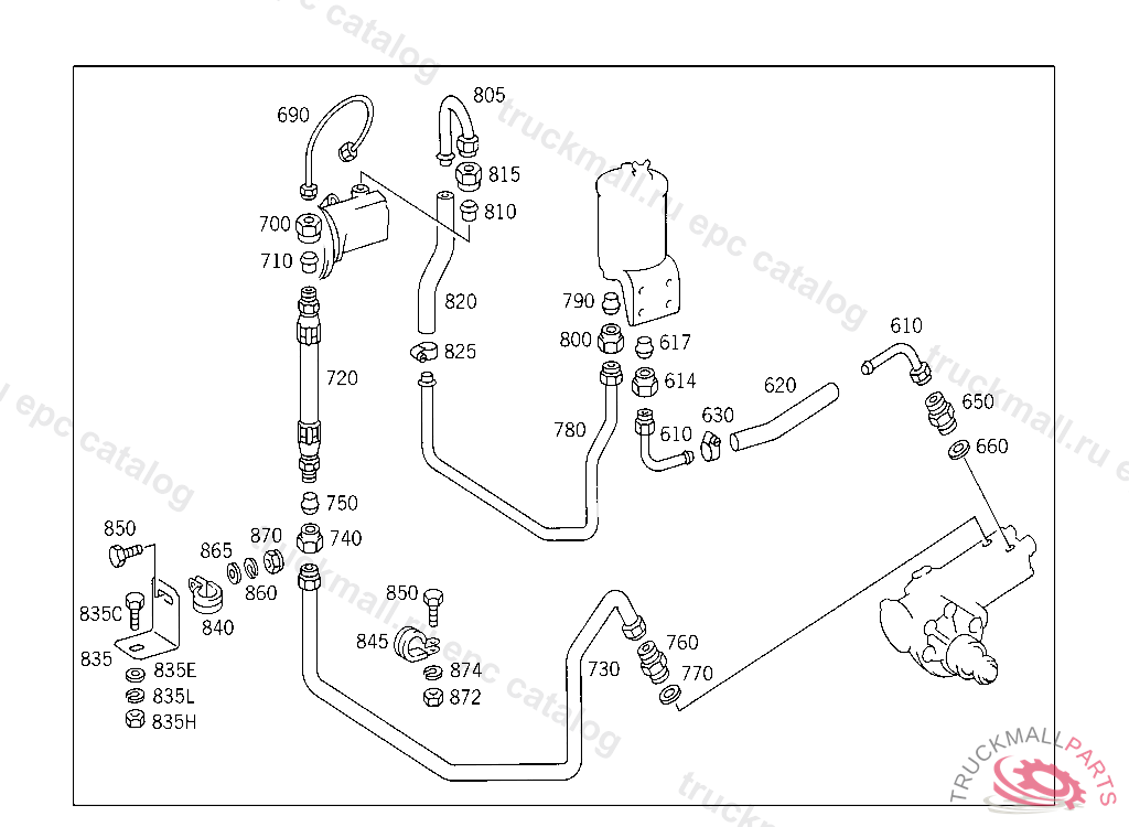 CLAMP DELIVERY AND SUCTION LINES TO ENGINE, FRONT