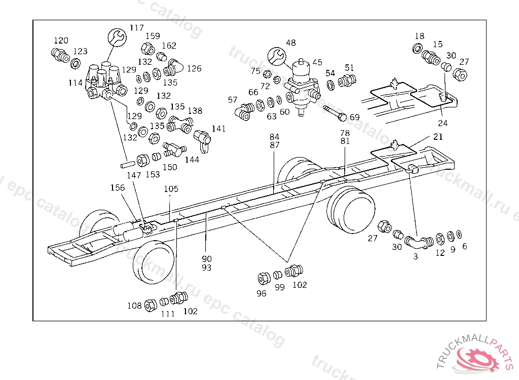 LINE FROM FOUR-CIRCUIT PROTECTIVE VALVE, CONNECTION "21",TO AIR RESERVOIR I 12X1 MM