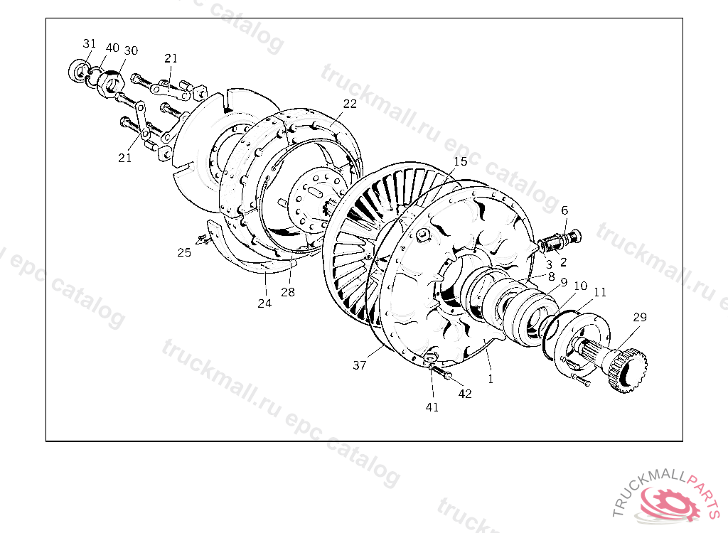 FRICTION LINING SUSPENDED IN CLUTCH PRESSURE PLATE HOUSING
