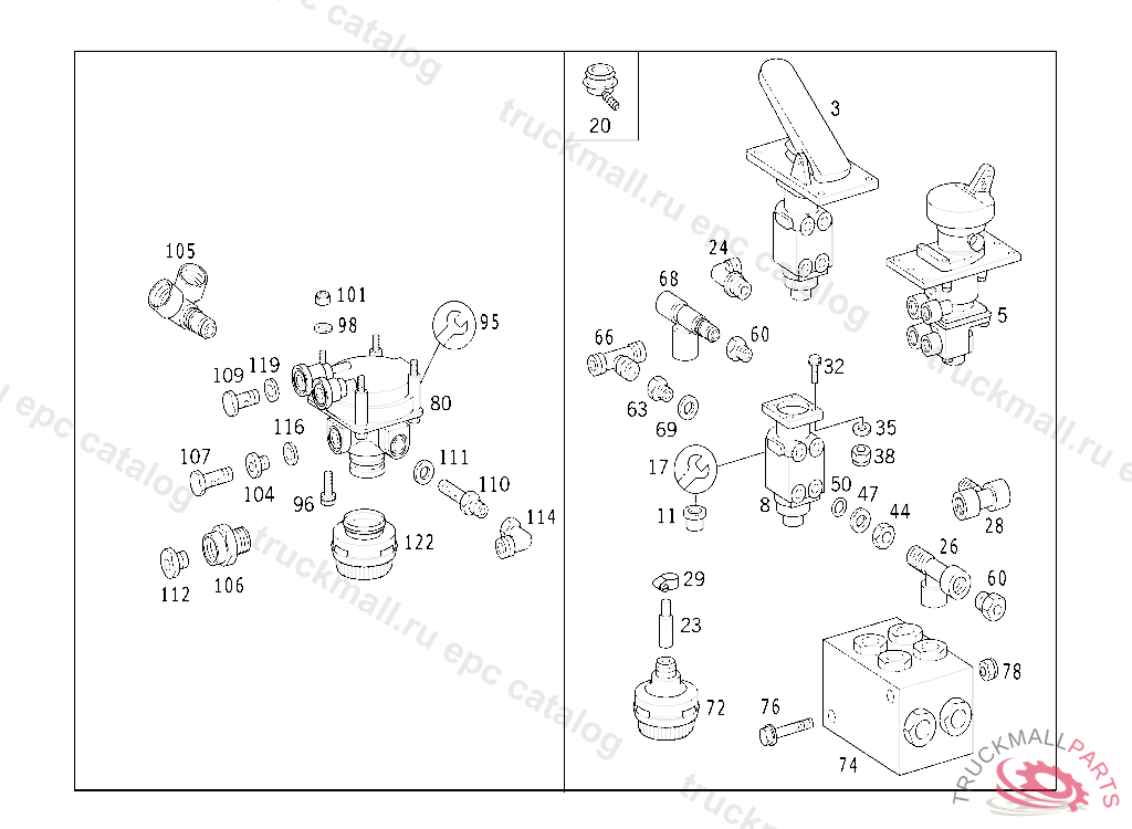 VALVE (RELAY VALVE),PARKING BRAKE WABCO,074622 ALSO INSTALLED ON 074550077358