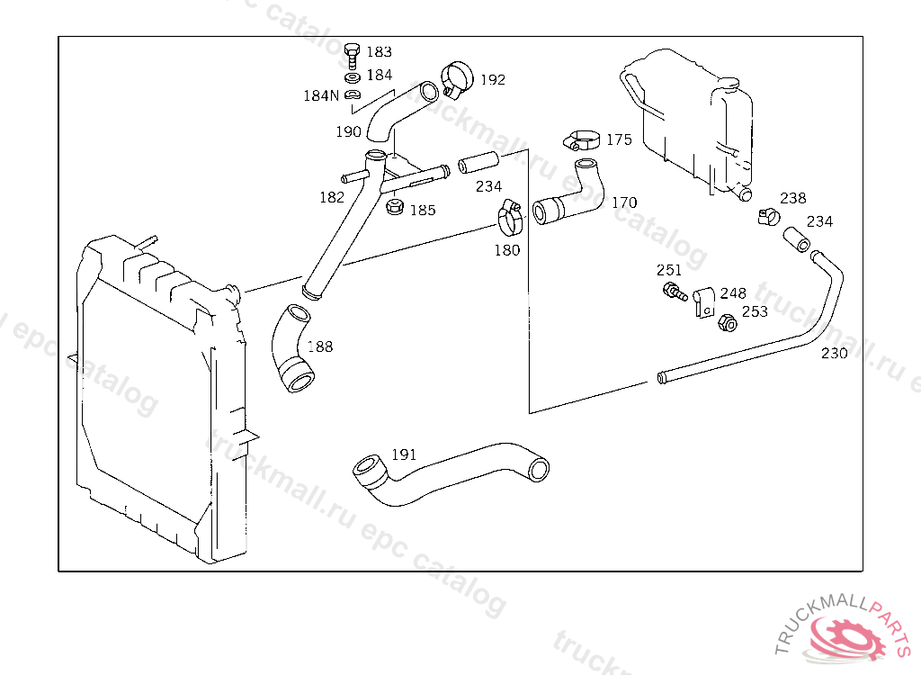 COOLING WATER PIPE FROM EXPANSION TANK TO WATER PUMP, 385.019 NOT FOR USE LESS MERCEDES-BENZ PLATFORM