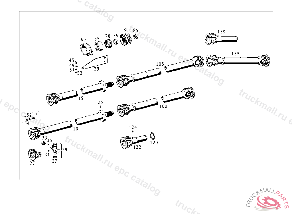 PROPELLER SHAFT FROM REAR AXLE I TO REAR AXLE II 740 MM,5 249277,184 KW (250 PS) 625.0055 322984,184 KW (250 PS) 625.009 PART IS ONLY OR ALSO SUPPLIED AS RECONDITIONED PART