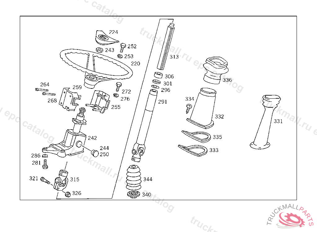 STEERING SHAFTLEMFOERDER, USED WITH SHORT MERCEDES-BENZ CAB