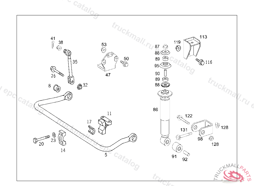 HEXAGON HEAD BOLT SHOCK ABSORBER TO AIR-SPRING-BELLOWS SUPPORT M20X1.5X110