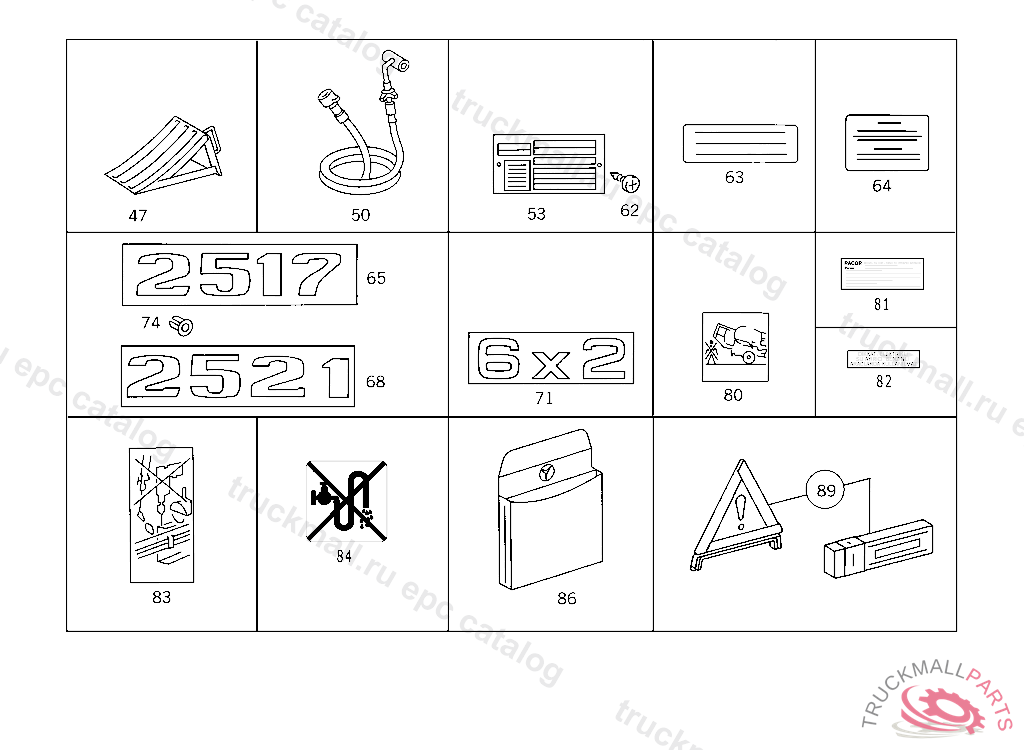 GUIDE SIGN DANGER AREA IN FRONT OF TILTED CAB, DISCONTINUED,PART IS NO LONGER REQUIRED