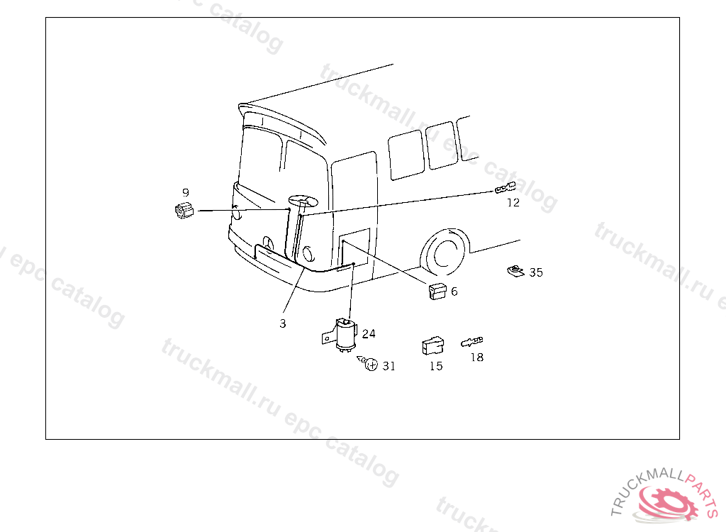 PIN BUSHING HOUSING. PLUG HOUSING FROM CHASSIS/CAB CONNECTION POINT TO TACHOGRAPH